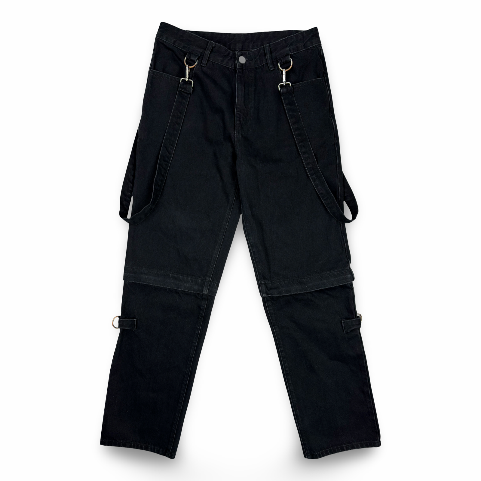 - TWO DETACHABLE STRAPS CLIPPED INTO WAIST D-RINGS.- BACK RIGHT LEG FEATURES A GUN METAL STUDDED BB LOGO.-HORIZONTAL ZIPPER SEAMS ABOVE THE KNEES LET THE LOWER LEGS DETACH.-STRAIGHT-LEG, SLIGHTLY RELAXED SILHOUETTE WITH A WORKWEAR / UTILITARIAN IDENTITY.