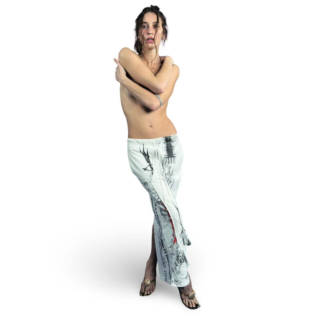 Originally part of the 2025 Take One capsule, this piece reimagines a 320 gsm screen-printed stonewashed sweatpant into a distressed waistband skirt. Hand-stitched and hand oil-painted, it transforms the original garment into a study of texture, form, and artistic defiance. Each skirt is unique, carrying visible evidence of the designer’s hand.